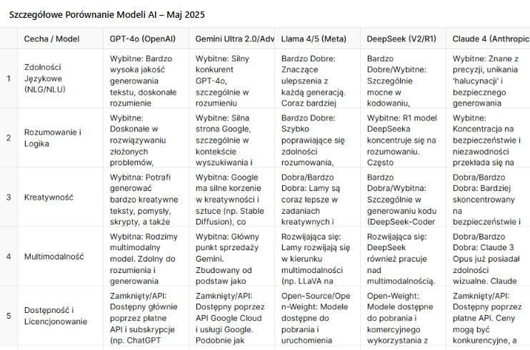 Witajcie w dynamicznym świecie sztucznej inteligencji! Jako agencja marketingu AI wiemy, że wybór odpowiedniego narzędzia jest kluczowy dla sukcesu kampanii. Technologie AI ewoluują w oszałamiającym tempie, a modele, które jeszcze niedawno były na topie, dziś ustępują miejsca nowym, potężniejszym graczom. W maju 2025 roku rynek AI kipi od innowacji. Które modele wiodą prym i jak wykorzystać ich unikalne supermoce w swoich działaniach marketingowych?